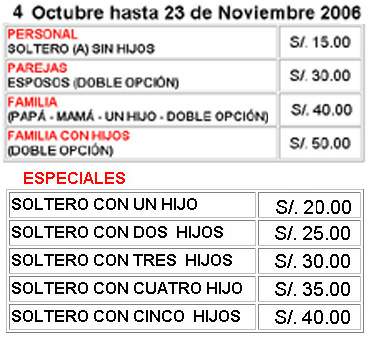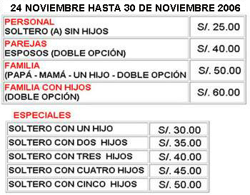 | FAMILIA CON HIJOS De 2 a 6 Hijos | S/. 65.00 |